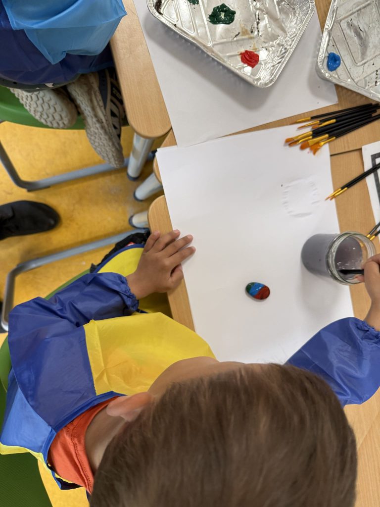 Mit großer Neugier und noch größerer Begeisterung tauchten die Netzwerk‑Kita-Kinder und unsere zukünftigen Erstklässler:innen der Nikolaus-Schule in das Thema „Steinzeit“ ein. An verschiedenen Mitmach‑Stationen konnten die Kinder erleben, wie Menschen vor vielen tausend Jahren lebten – und dabei selbst aktiv werden.